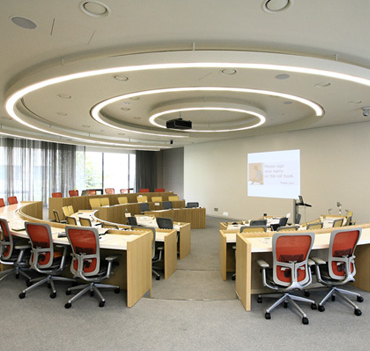 동대문두산타워 Education Center동대문 두산타워에서 근무하는 구성원들의 학습을 위한 별도 공간으로, 타운홀을 위한 대형 강의장과 개인 별 온라인 학습이 가능한 다목적 회의실 공간 제공 -